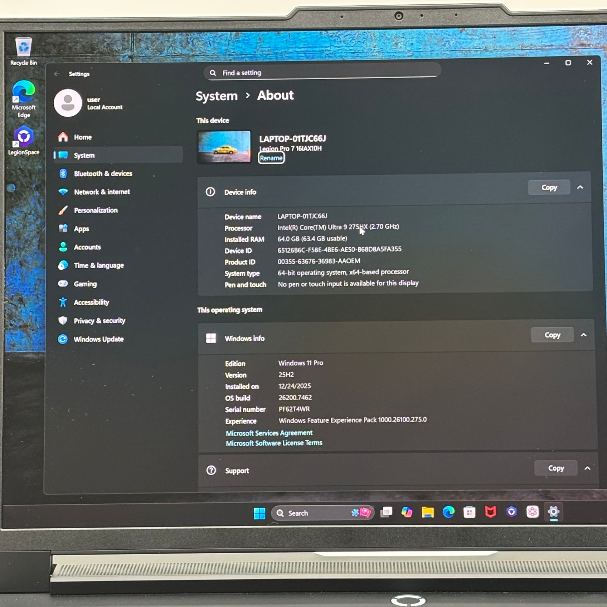 - Lenovo Legion 7 Pro 16IAX10H 16" Core Ultra 9 275HX 2.7GHz 64GB RAM 1TB SSD GeForce RTX 5090