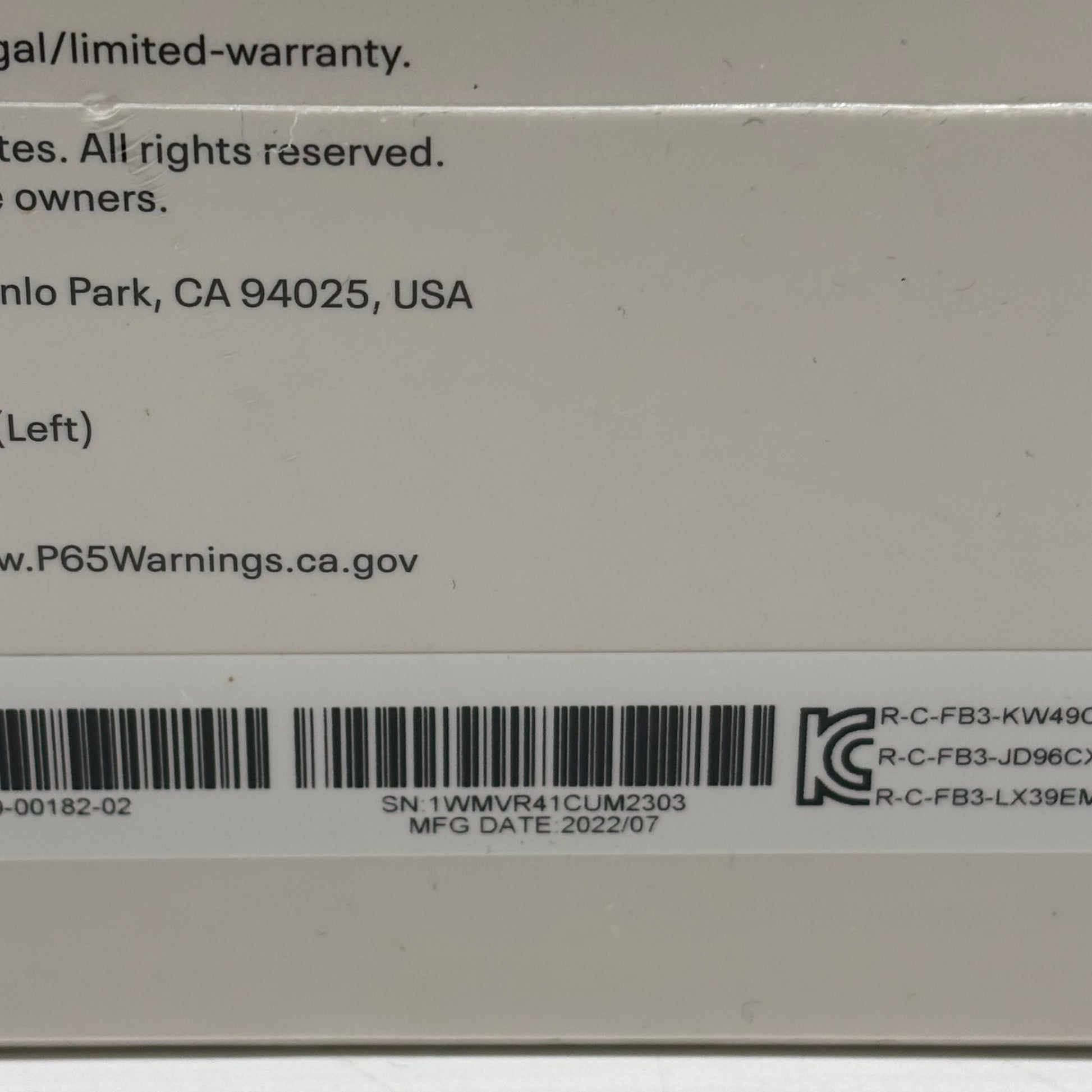 | Headset Serial# | 1WMVR41CUM2303 |