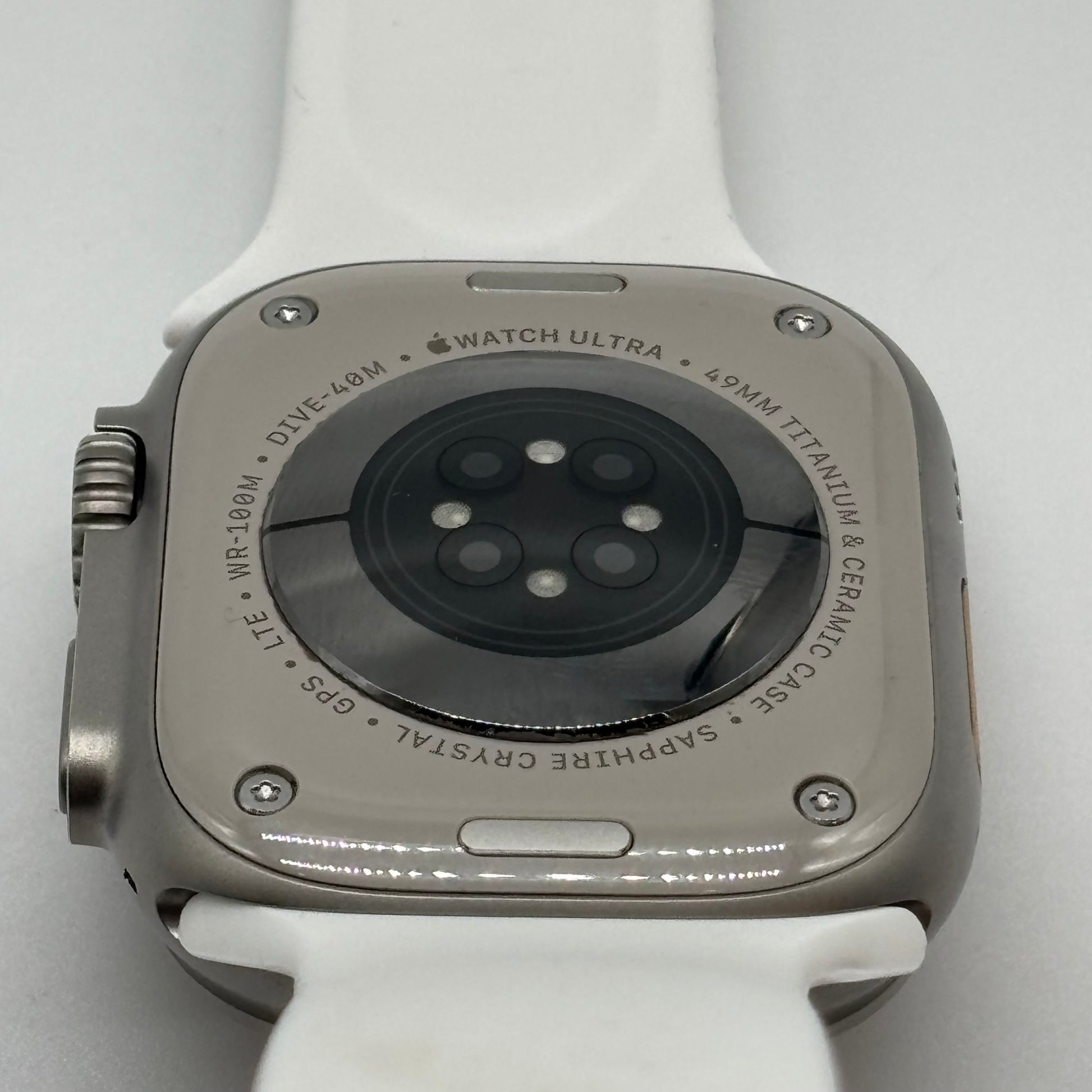Unlocked Apple Watch Ultra 49MM Natural Titanium White Sport Band
